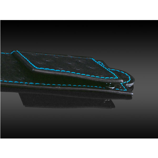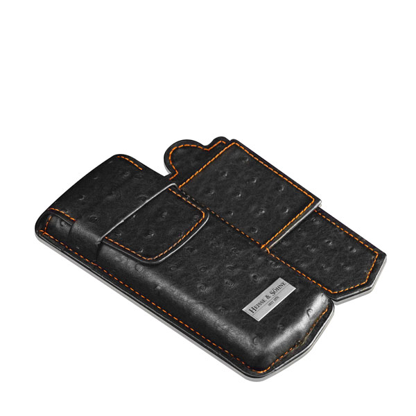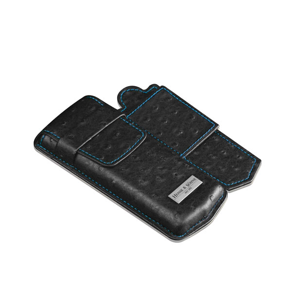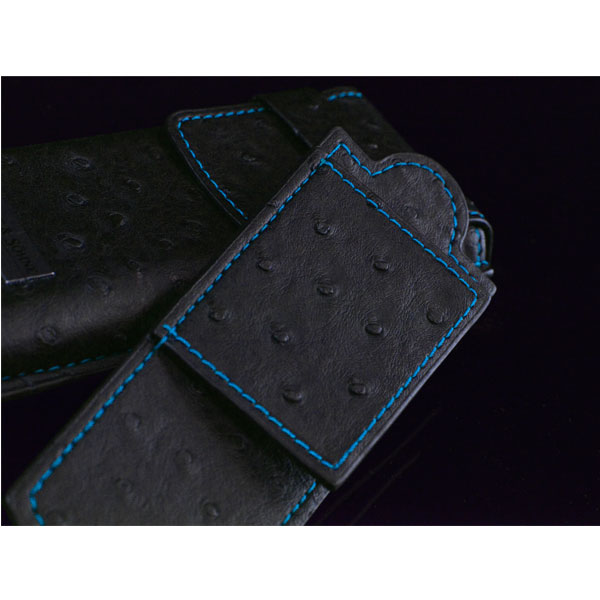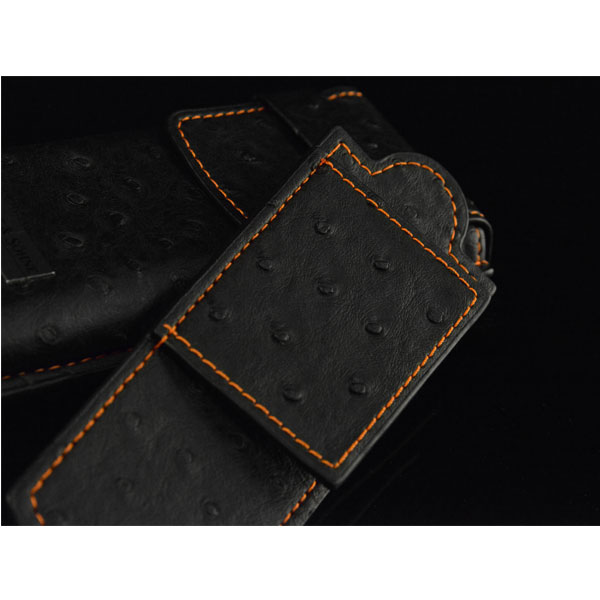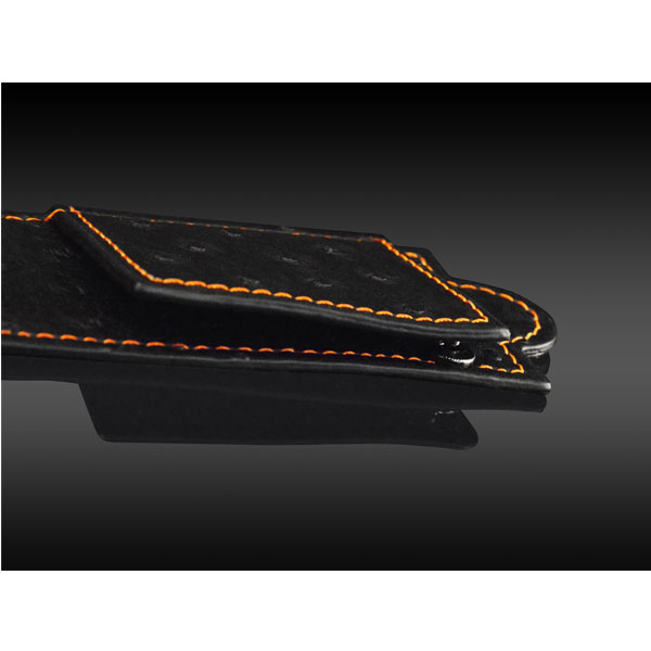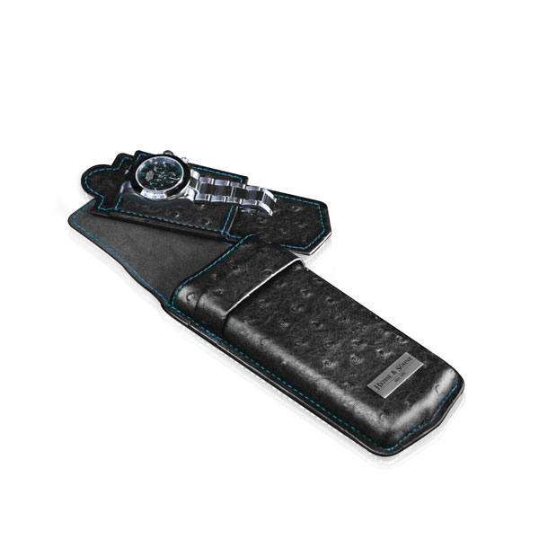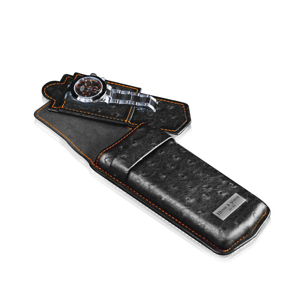 Applied on a tab in ostrich look, the watches can be stowed or removed excellently in the case. You can choose between the classic version with black seam and two sporty-modern variants with seam in cyan or orange.