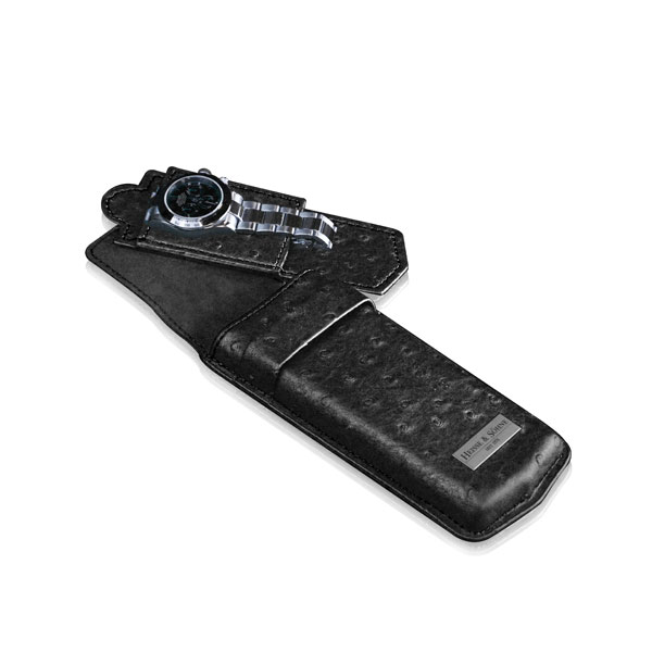 Due to their shape, the cases Mondo by Heisse & Söhne, which are produced in ostrich optics, are ideal for storing watches with a metal or leather strap.