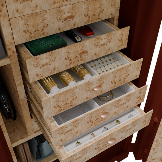 Keep your jewelry beautifully arranged and instantly accessible with the Brawny safe from Luxuriae’s customizable drawer system. Each layout is crafted to accommodate specific jewelry types, offering elegant structure and maximum protection—so every piece is right where you need it, when you need it…